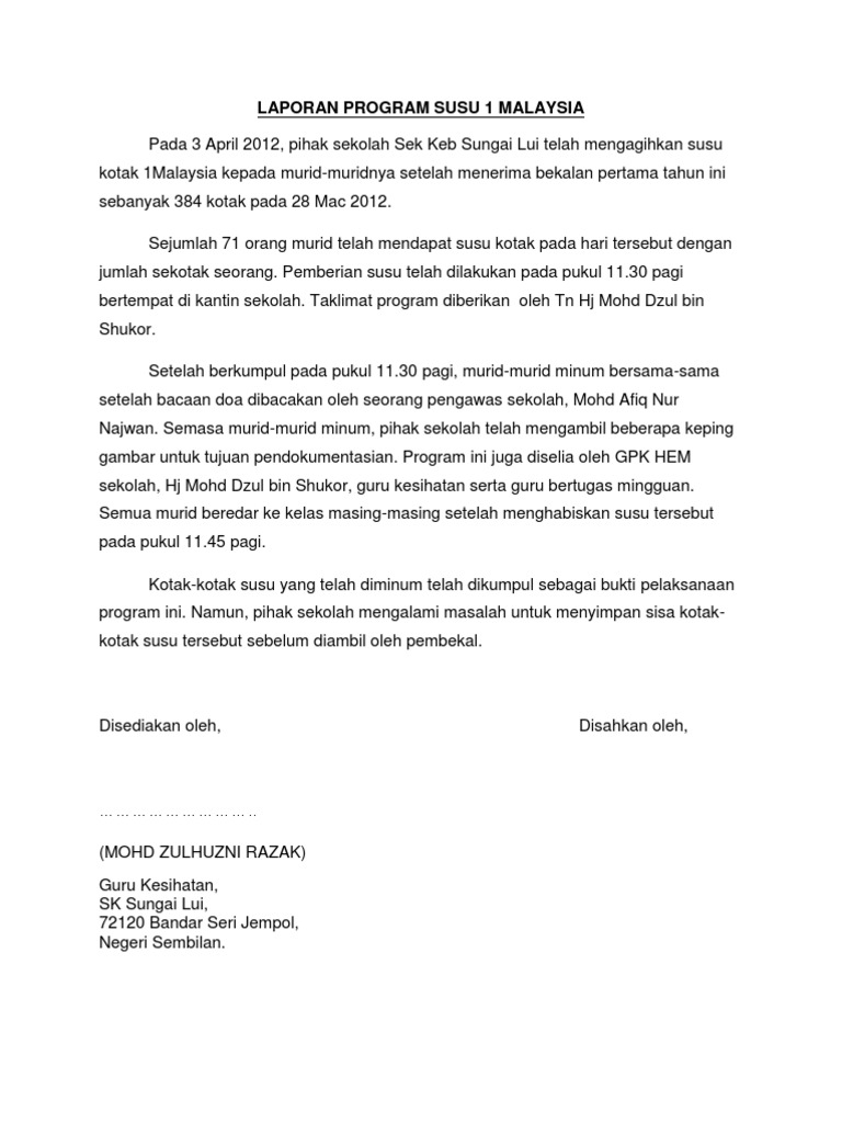 This skill is more than capable of making you a standout among the crowd with attractive rewards that come in. Cik siti rohani binti shariban ( sesi petang ) penolong : Pada 14 september 2017, pihak sekolah sekolah kebangsaan kampung bungai. Laporan program susu 1 malaysia. Learning the different ways of programming a computer is one of the most versatile skills available in the market today. Che faridah binti mamat pengenalan: Students can earn this title after completing approximately two… read more. Program susu 1malaysia (ps1m) adalah kesinambungan program bantuan susu sekolah (program susu sekolah) 2. Ianya merupakan sebahagian daripada rancangan makanan tambahan (rmt) yang bertujuan untuk. Stay up to date upcoming events from education malaysia global services community. ► april ( 1 ). Agihan susu 1malysia ini dilakukan 3 kali seminggu iaitu pada setiap hari isnin, rabu dan khamis sekiranya tiada kekangan lain. Sekolah kebangsaan st.john telah mengadakan program minum susu 1 malaysia pada 24.09.2014 / rabu.