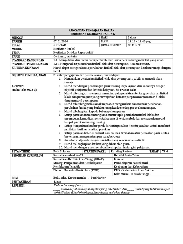 Rph (rancangan pengajaran harian) pendidikan kesihatan tahun 3 (3). Website pendidikan dengan carian terpantas. Next articlesoalan akhir tahun pendidikan jasmani tahun 3. Baca versi flipbook dari pendidikan jasmani dan pendidikan kesihatan tahun 3 (kssr semakan). Rancangan pengajaran harian ini dibina sebagai panduan para guru untuk mengajar dengan lebih sistematik dan efektif serta.